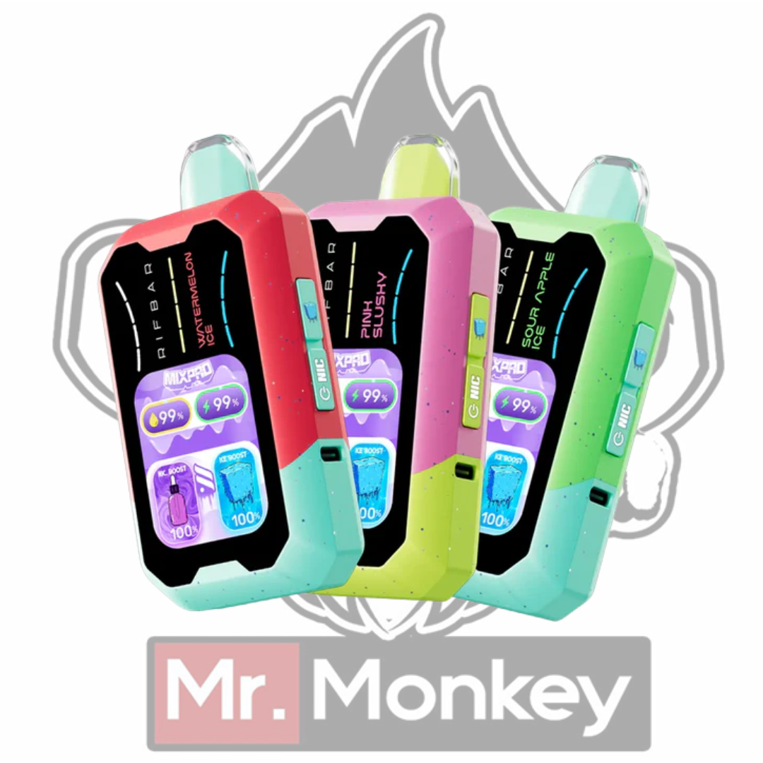 Dispositivo de 40,000 puffs con enfoque en “mix” para ajustar nivel de frescura y nicotina. Incluye pantalla para mostrar batería y líquido, además de batería USB-C recargable.